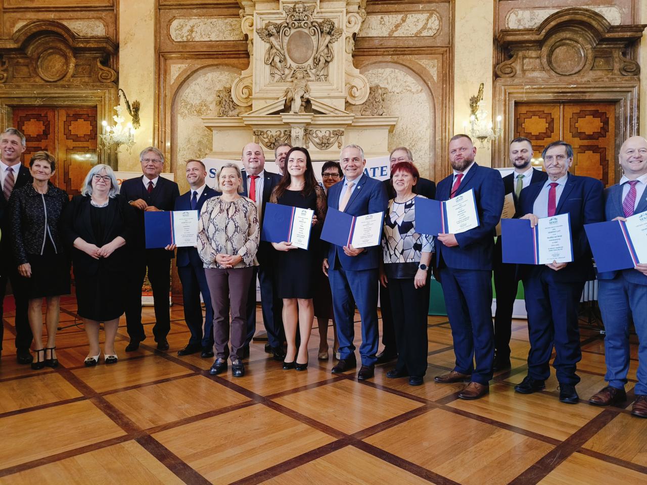 Pamětní listy si přijeli převzít i zástupci dalších oceněných obcí Královéhradeckého kraje - městy Nový Hrádek za Fialovou stuhu a obec Rudník za Modrou stuhu. Všichni společně jsme hrdě reprezentovali Královéhradecký kraj, který měl v letošním roce mezi oceněnými obcemi silné a inspirativní zastoupení.