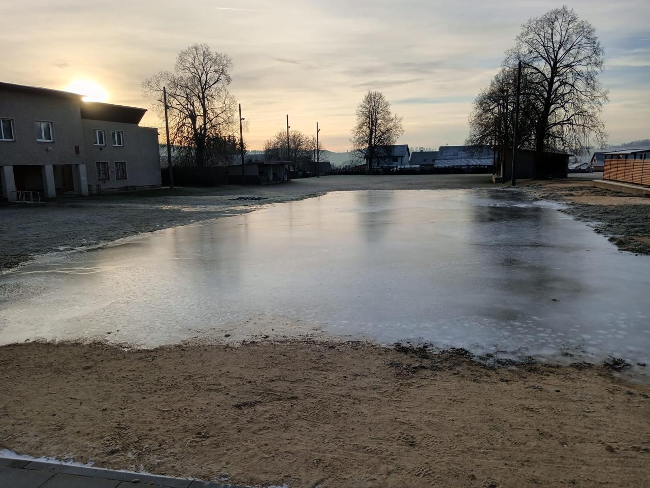 Vznik kluziště je výsledkem velkého nasazení a ochoty místních tatínků, kteří během prvních dnů vánočních svátků věnovali svůj čas a energii přípravě ledové plochy. Patří jim velké poděkování – bez jejich pomoci by kluziště nevzniklo.