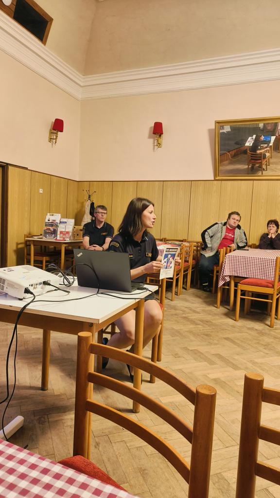 Ve čtvrtek 13. listopadu 2025 proběhl v sále pohostinství v Bezděkově nad Metují třetí blok preventivního cyklu „Setkání s IZS“. Tentokrát jsme přivítali odborníky z Hasičského záchranného sboru Královéhradeckého kraje – kpt. Ing. Janu Týfovou a mjr. Ing. Leoše Hejnu.